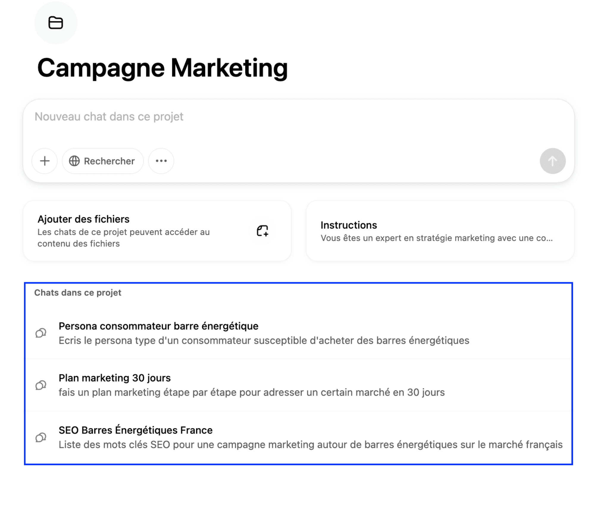 Mise en place avec "Projets" de ChatGPT :
