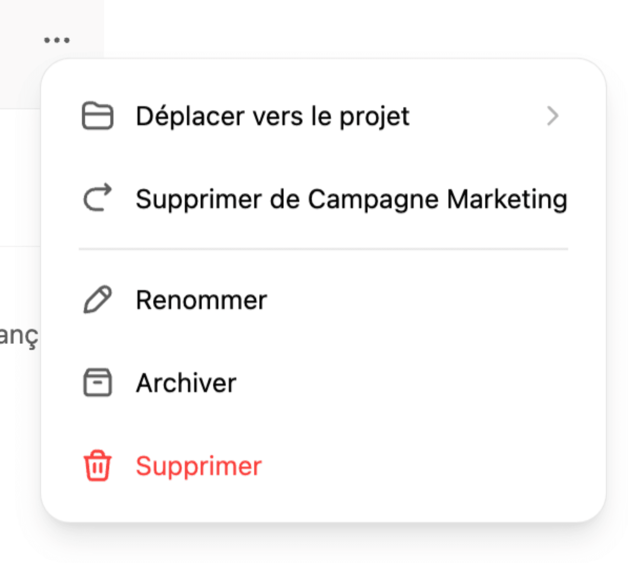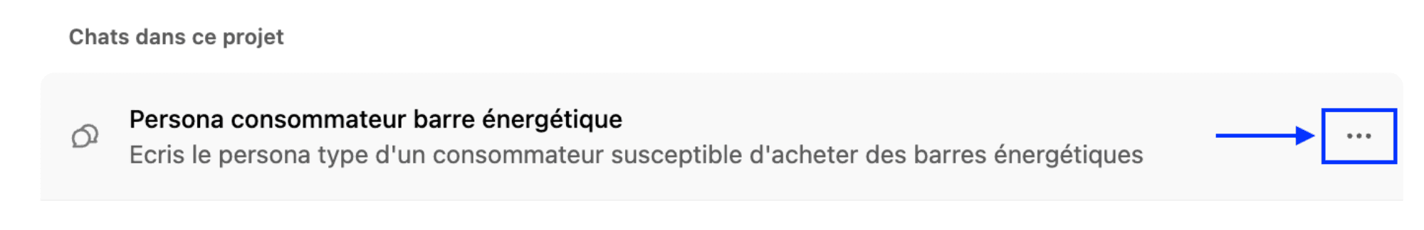 6️⃣ A droite de chaque Chat, plusieurs actions sont disponibles en cliquant sur “…”